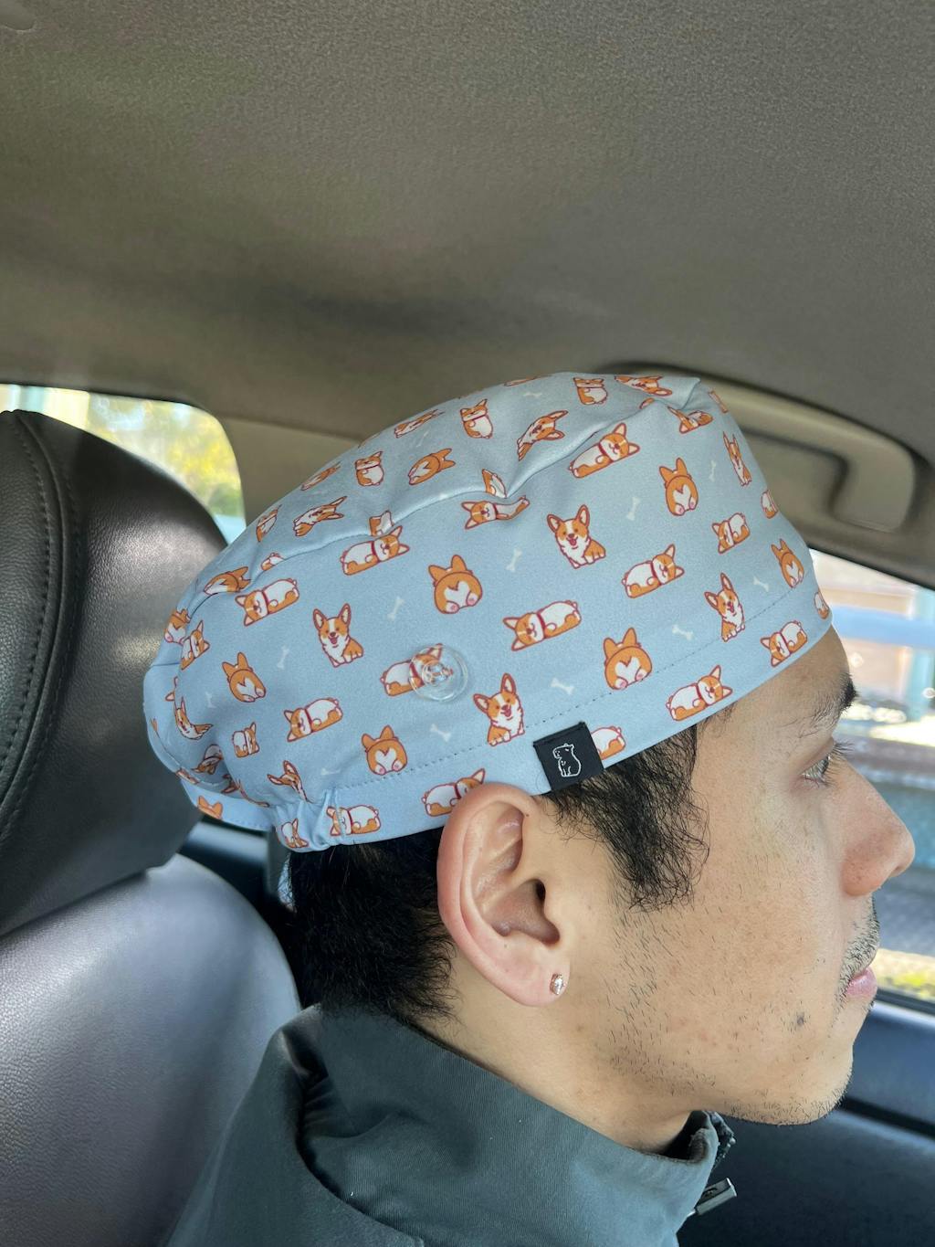 Whenever he wears this to the hospital, coworkers are telling him that they love the capybara scrub cap and ask him where he got it! He loves the feel of the material inside around the forehead- it's super soft. The buttons on the sides for a face mask loop are a huge plus. I got the matching capybara cap in the bun version which I also love wearing. I feel like the quality is much higher than the caps I find on Etsy even at the same price.