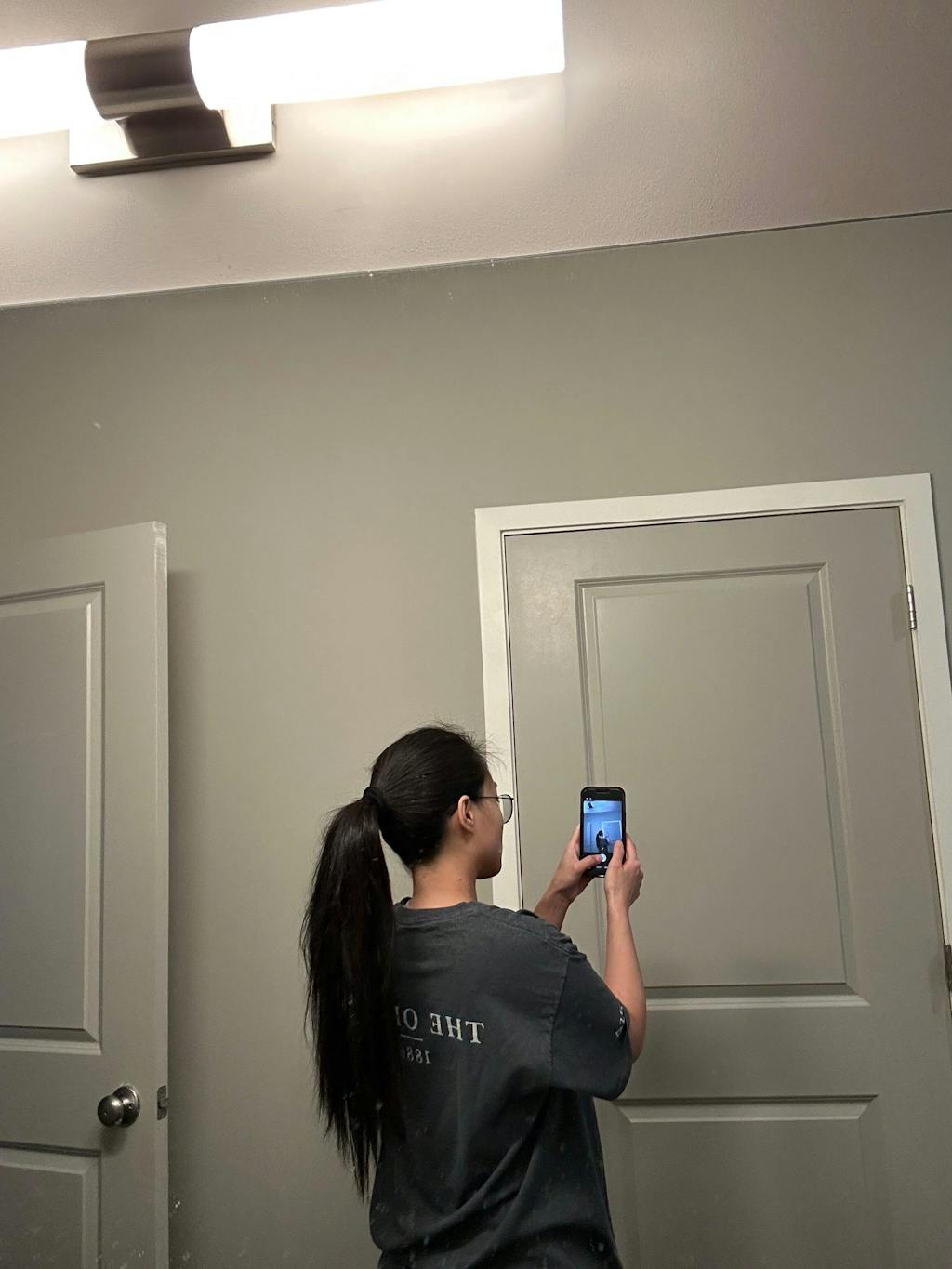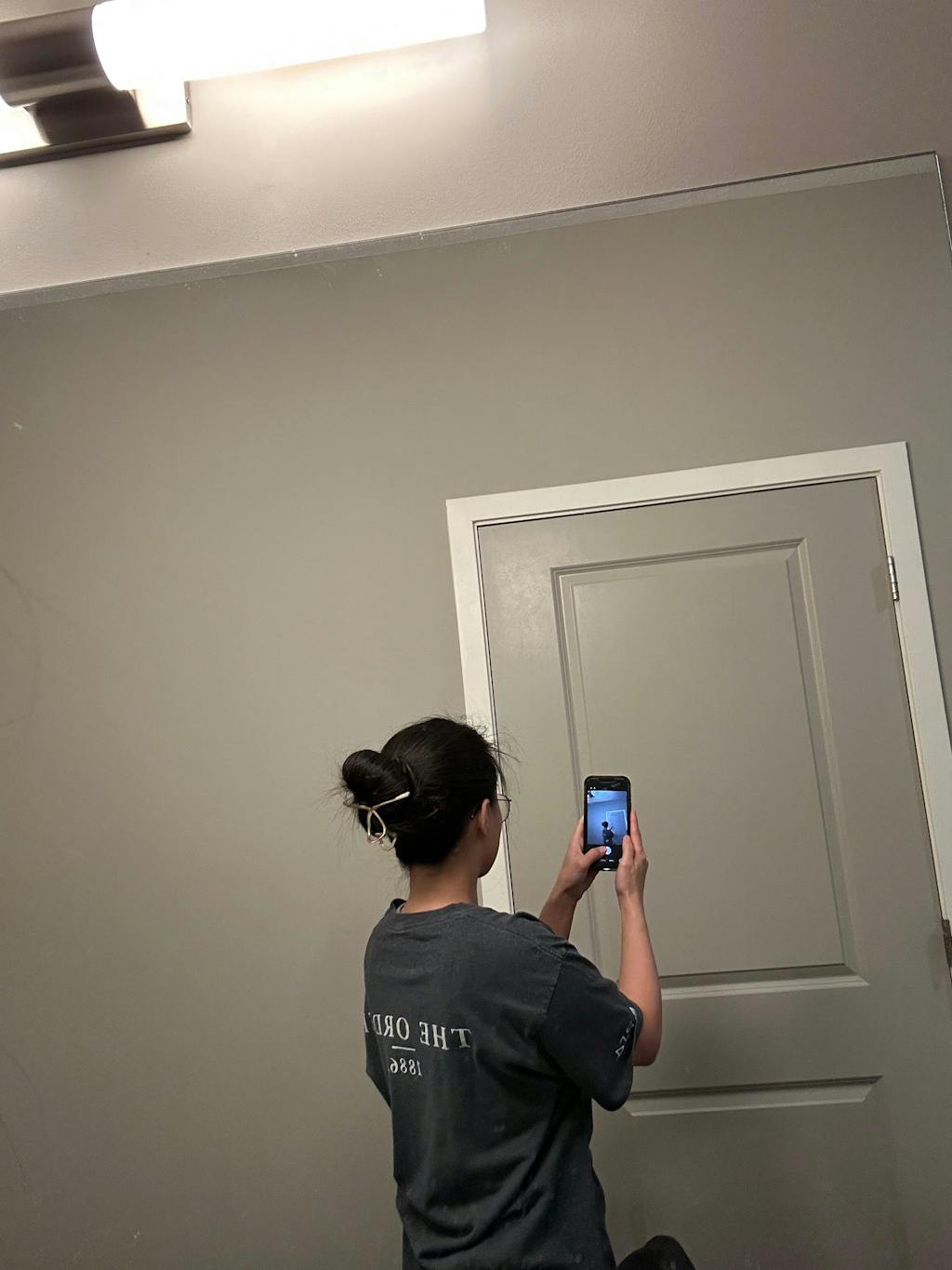 Tie your hair in medium-high bun at about the level of your ears